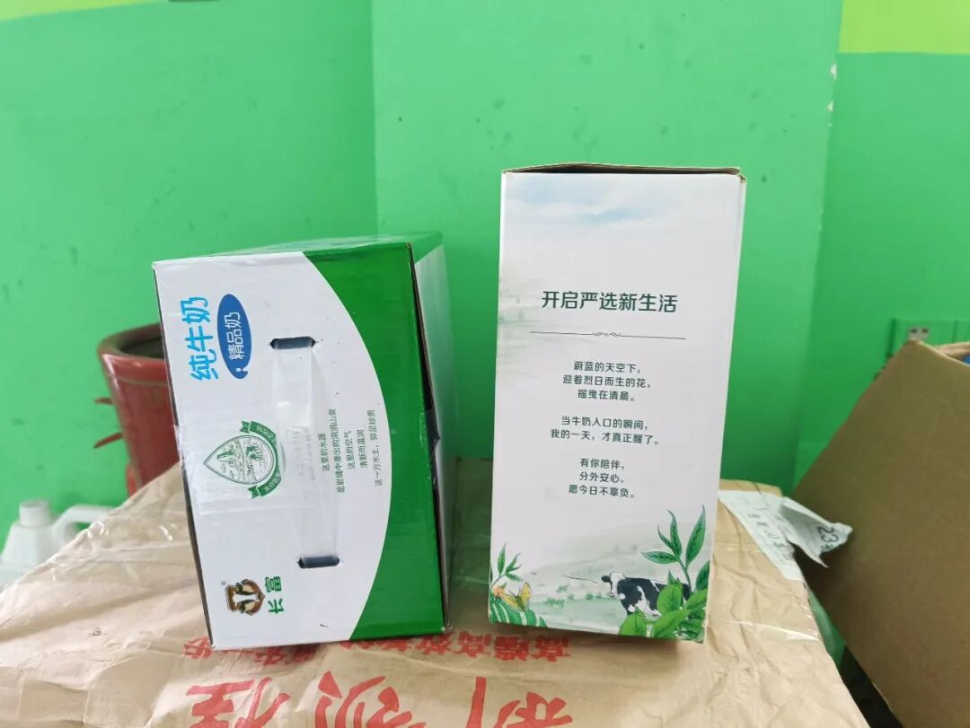 牛奶2箱,水果若干、猪肉、鸭肉、