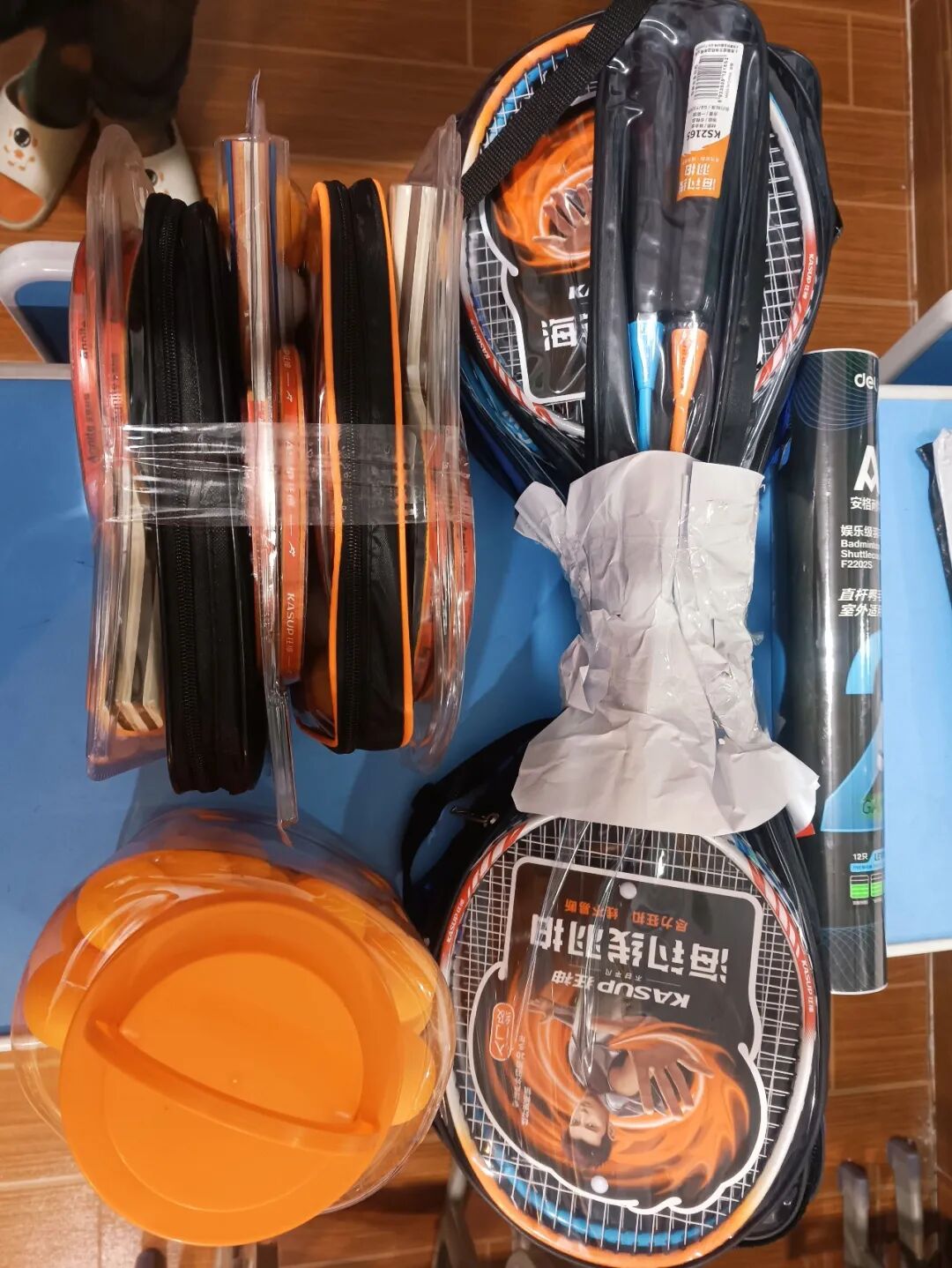 乒乓球拍5副、乒乓球75个