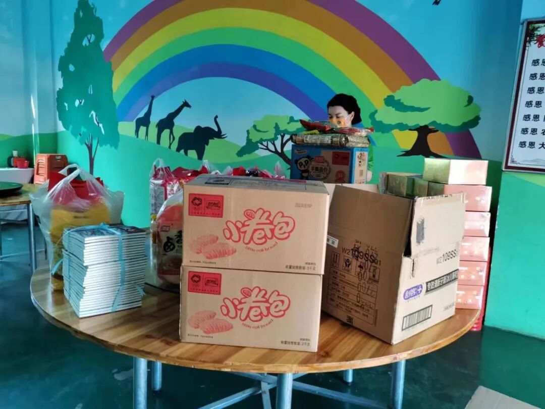 饼干7箱、零食2袋、图书3箱、西瓜一批、