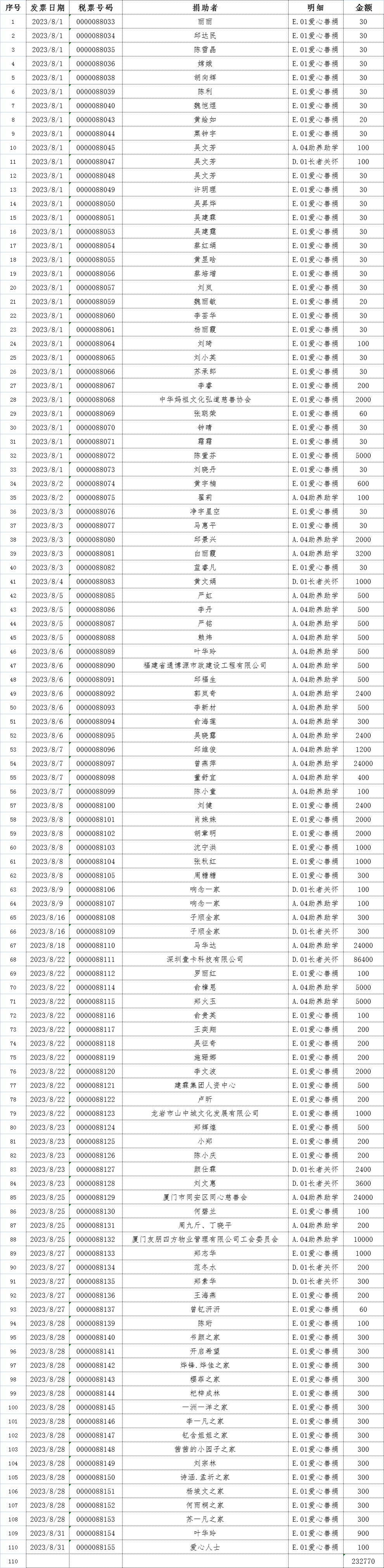 慈善捐赠总额为:24000.00元,捐赠发票公示如下: