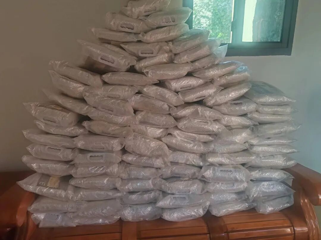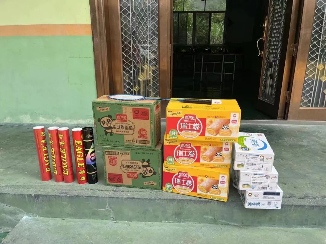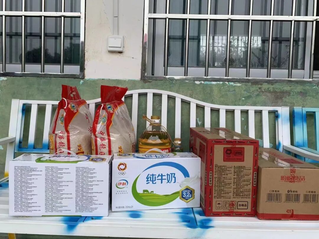 大米40斤、食用油1桶、牛奶2箱、面包2箱