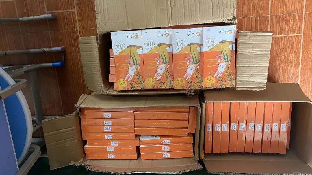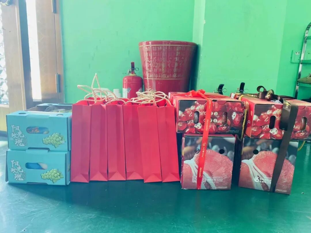 月饼6盒、提子2箱、石榴2箱、蜜柚2箱