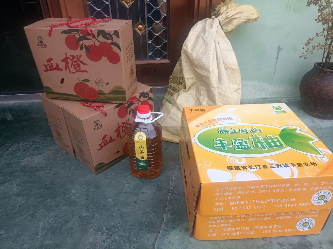 公鸡2只、血橙3箱、柚子2箱、茶油1桶