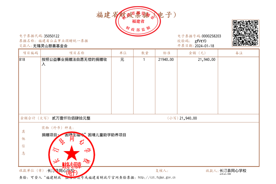 慈善捐赠总额为:21940.00元,捐赠发票公示如下:
