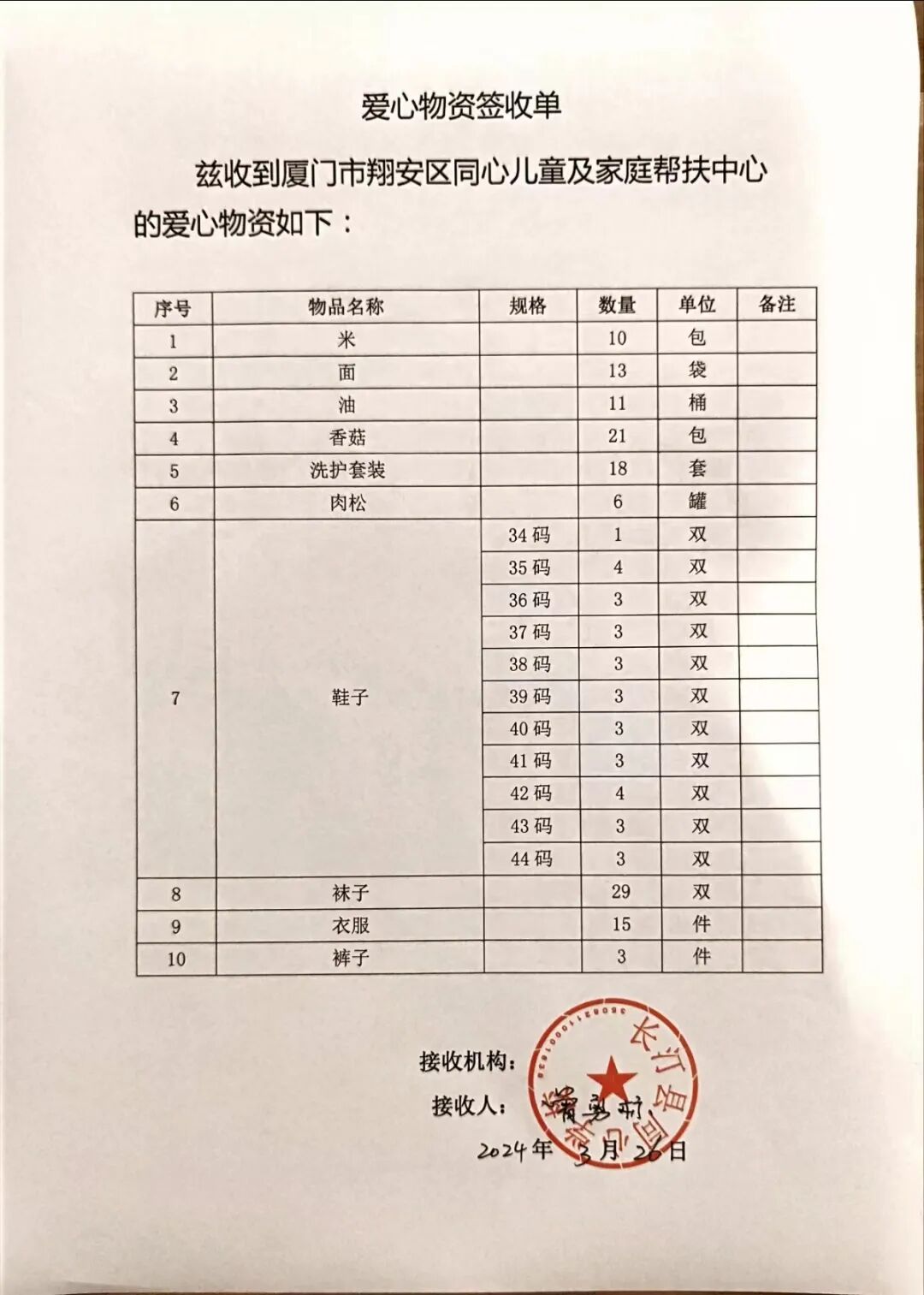 爱心捐赠大米、油、面条、 香菇等物资一批