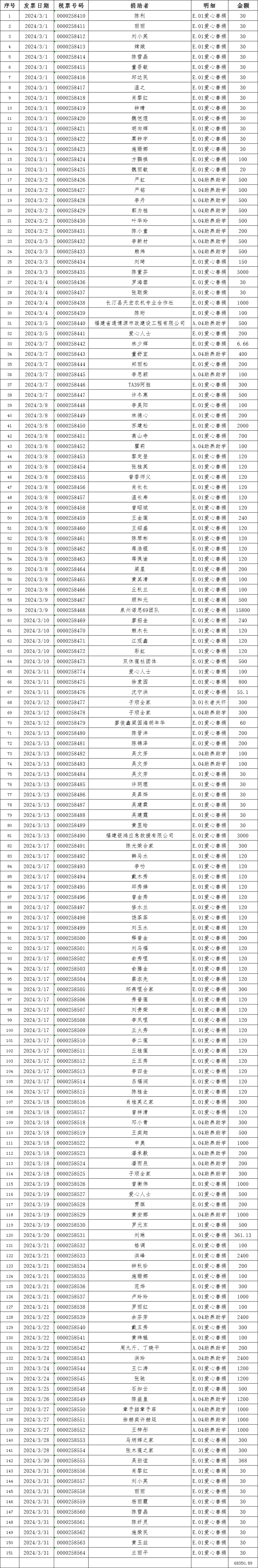 慈善捐赠总额为:3000.00元,捐赠发票公示如下: