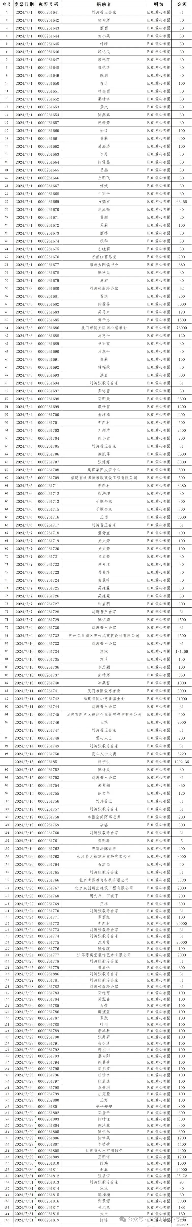 慈善捐赠总额为:21000.00元,捐赠发票公示如下: