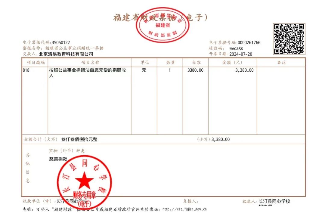 慈善捐赠总额为:3380.00元,捐赠发票公示如下: