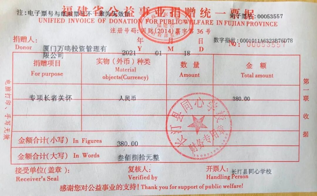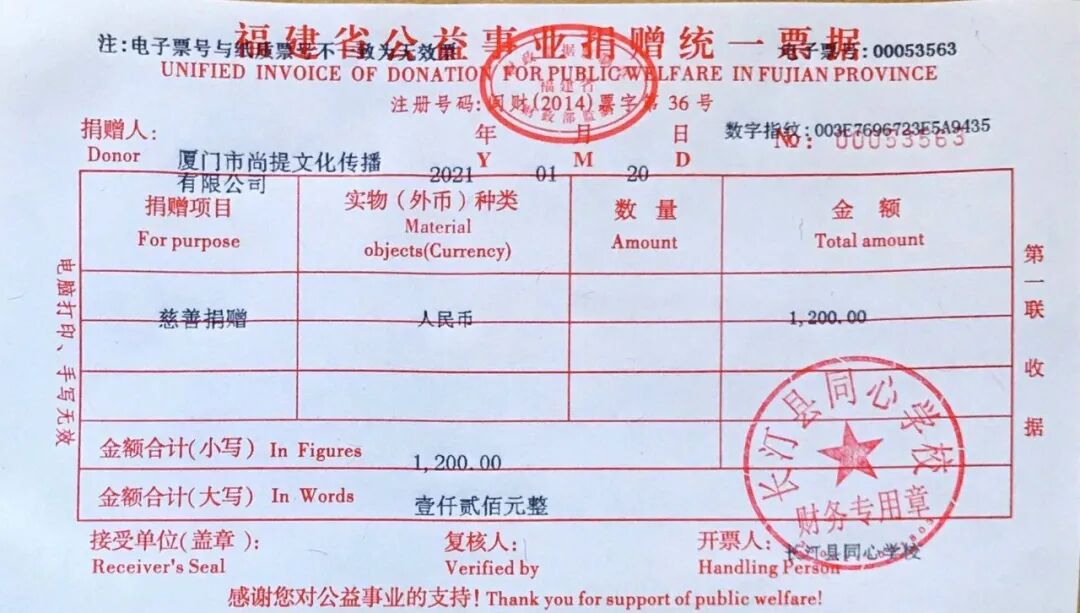 慈善捐赠总额为:1200.00元,捐赠发票公示如下: