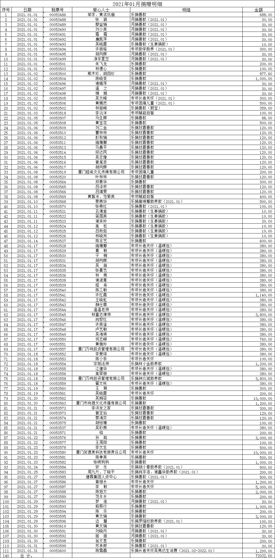 慈善捐赠总额为:4180.00元,捐赠明细公示如下: