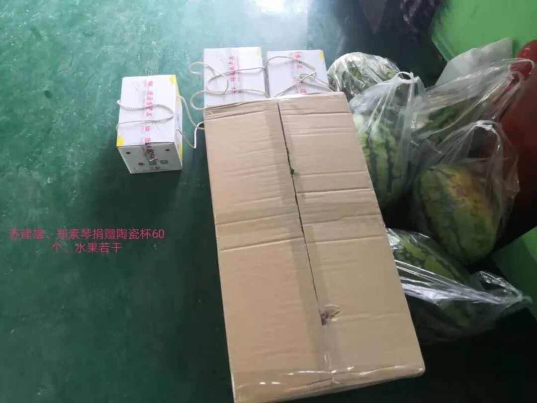 苏建雄、郑素琴夫妇陶 捐赠陶瓷杯60个、水果若干