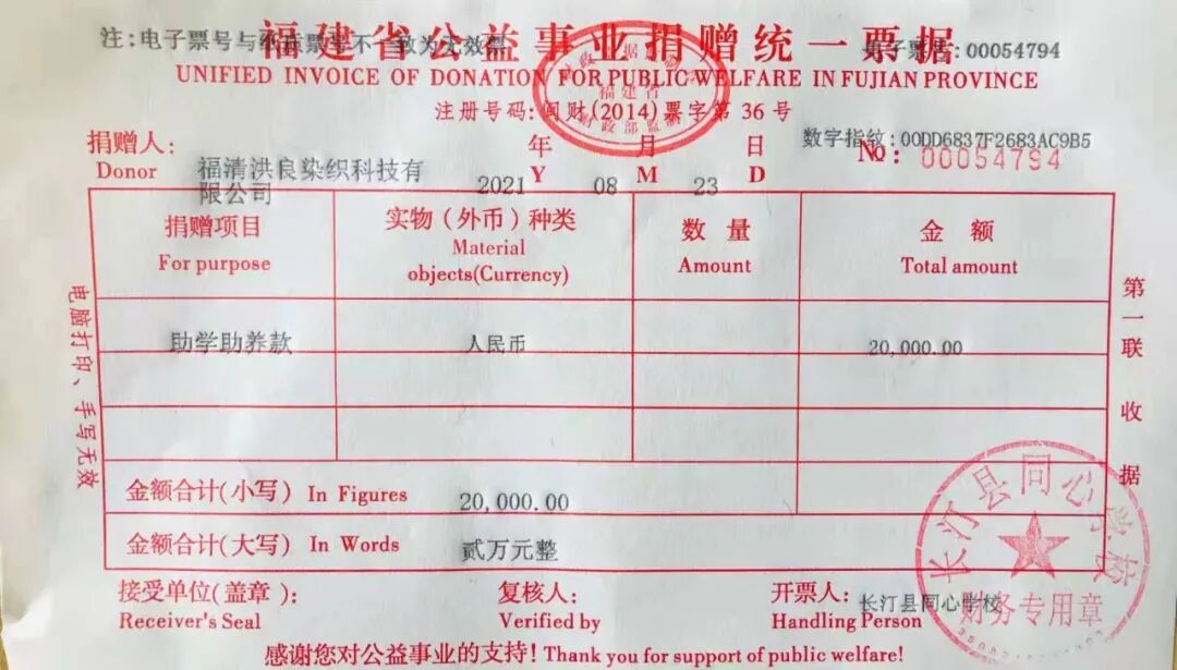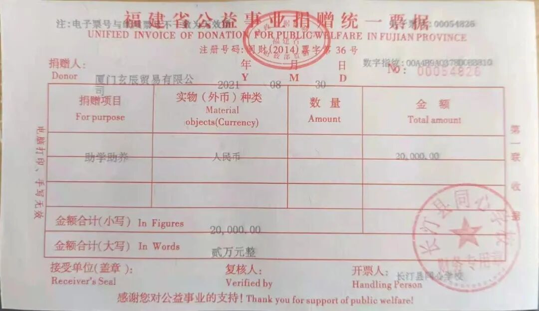 慈善捐赠总额为:20000.00元,捐赠发票公示如下: