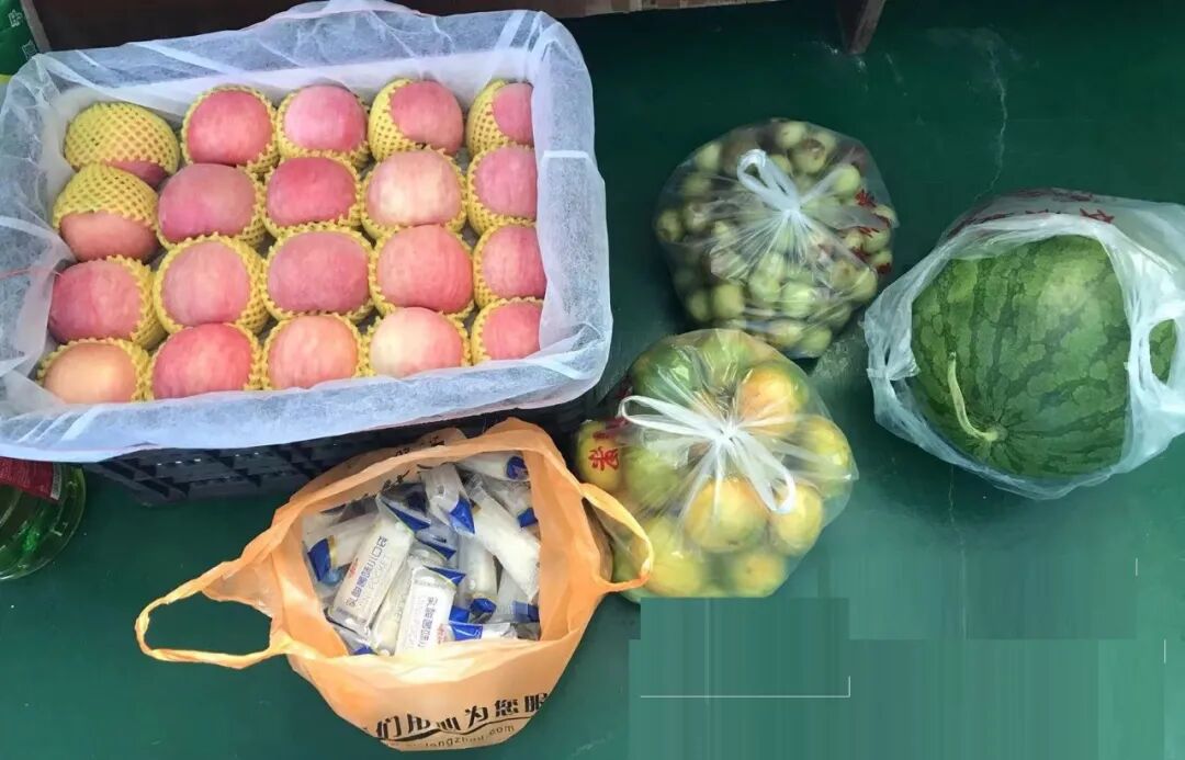 爱心捐赠水果3袋、小点心1袋