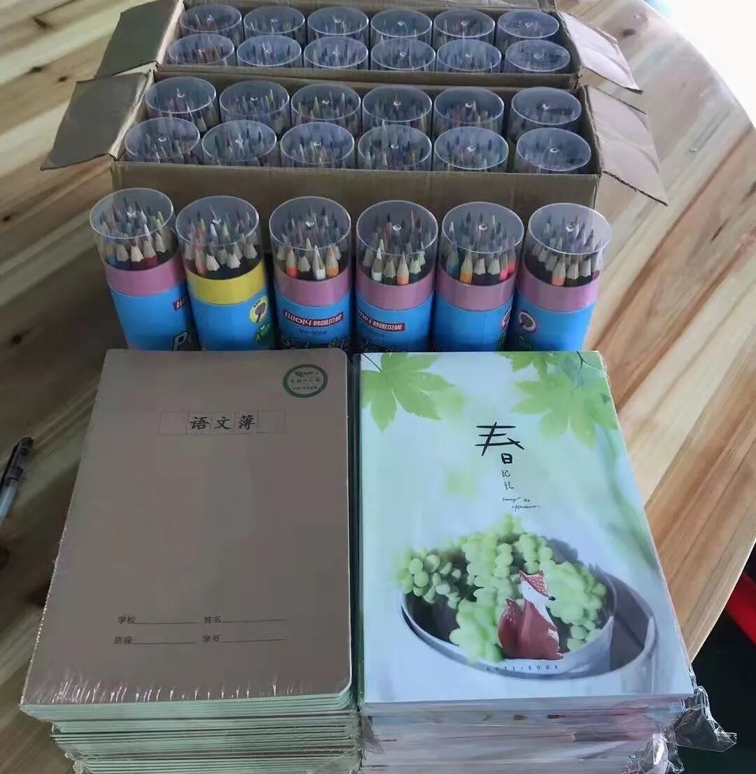 吴启莲女士 爱心捐赠30桶彩色铅笔、笔记本若干