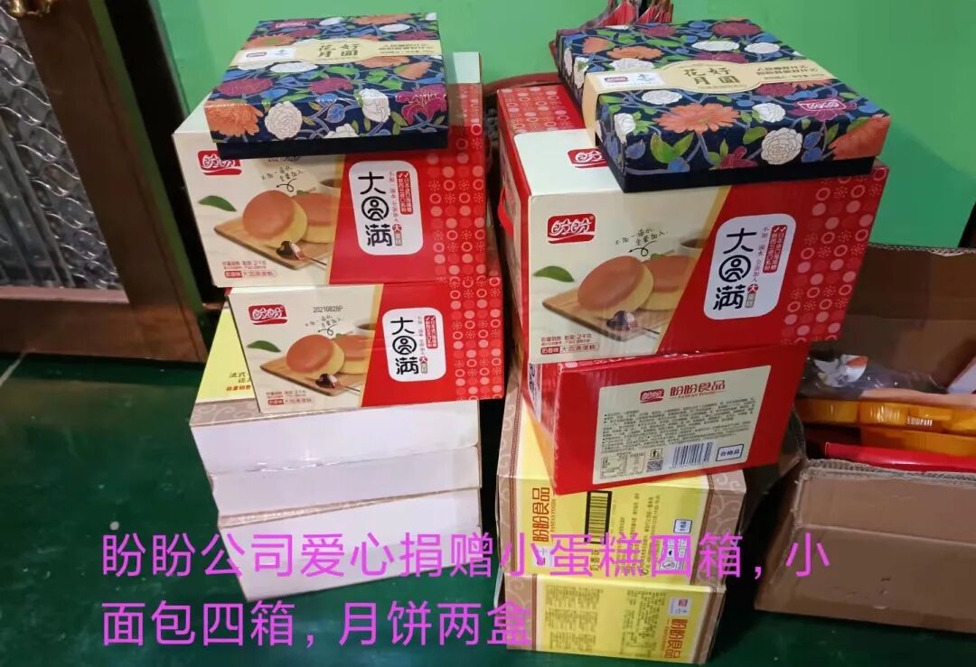 盼盼公司 爱心捐赠小蛋糕4箱、小面包4箱、