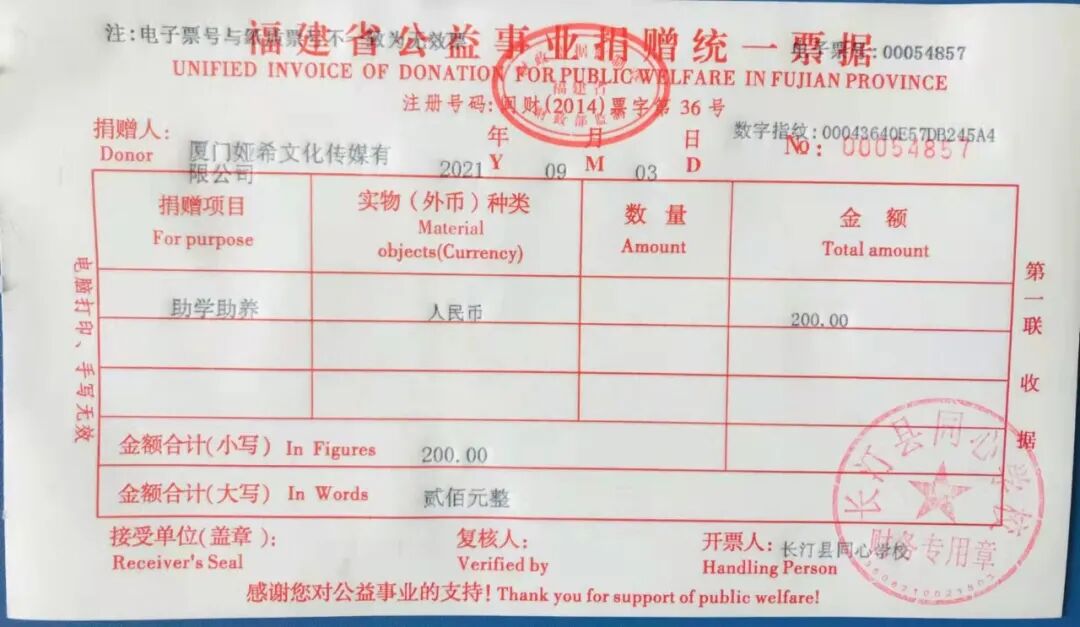 慈善捐赠总额为:200.00元,捐赠发票公示如下: