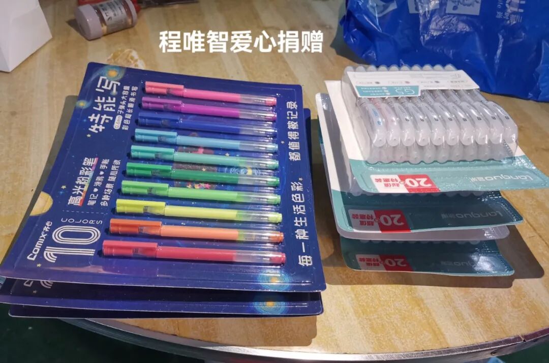 程唯智 爱心捐赠中性笔60支,彩笔30支