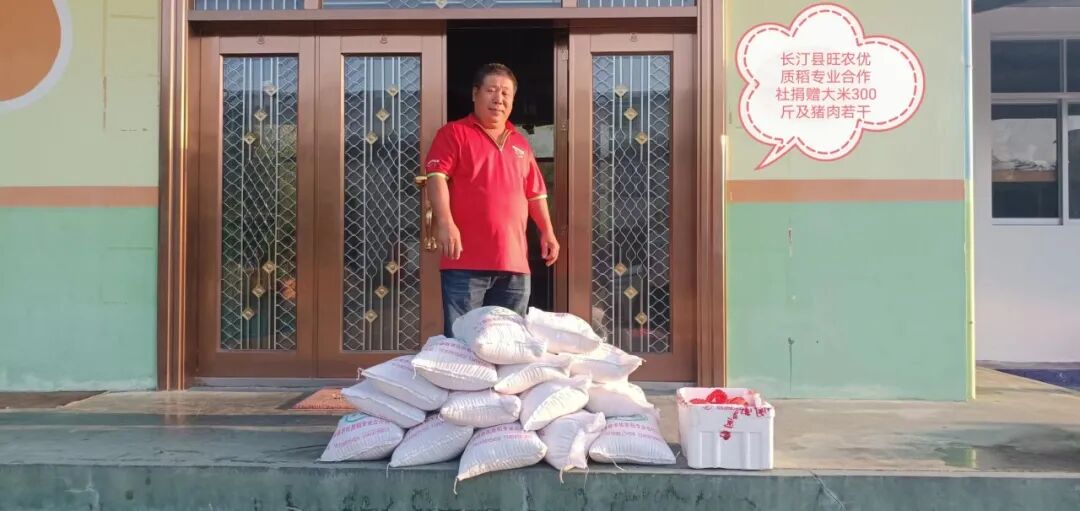 爱心捐赠大米300斤及猪肉20多斤