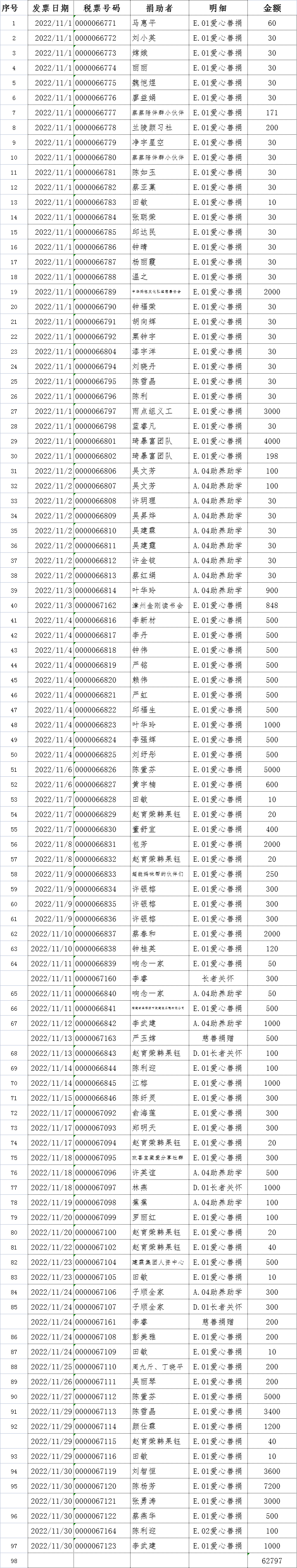 慈善捐赠总额为:848.00元,捐赠发票公示如下: