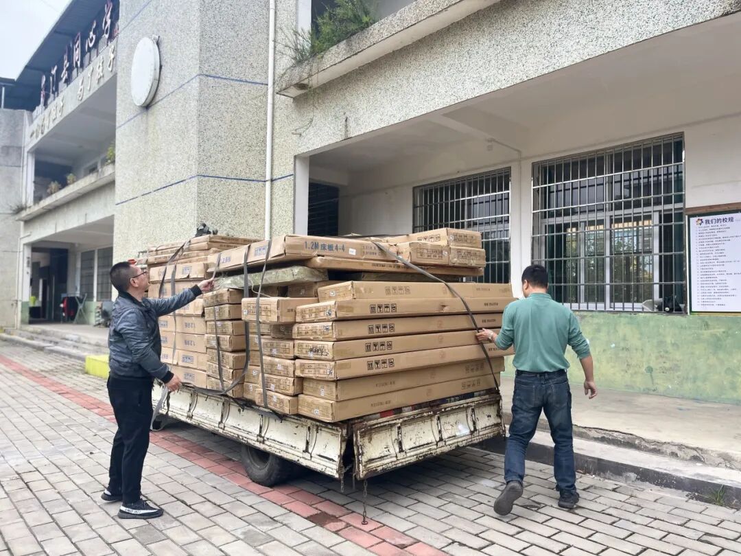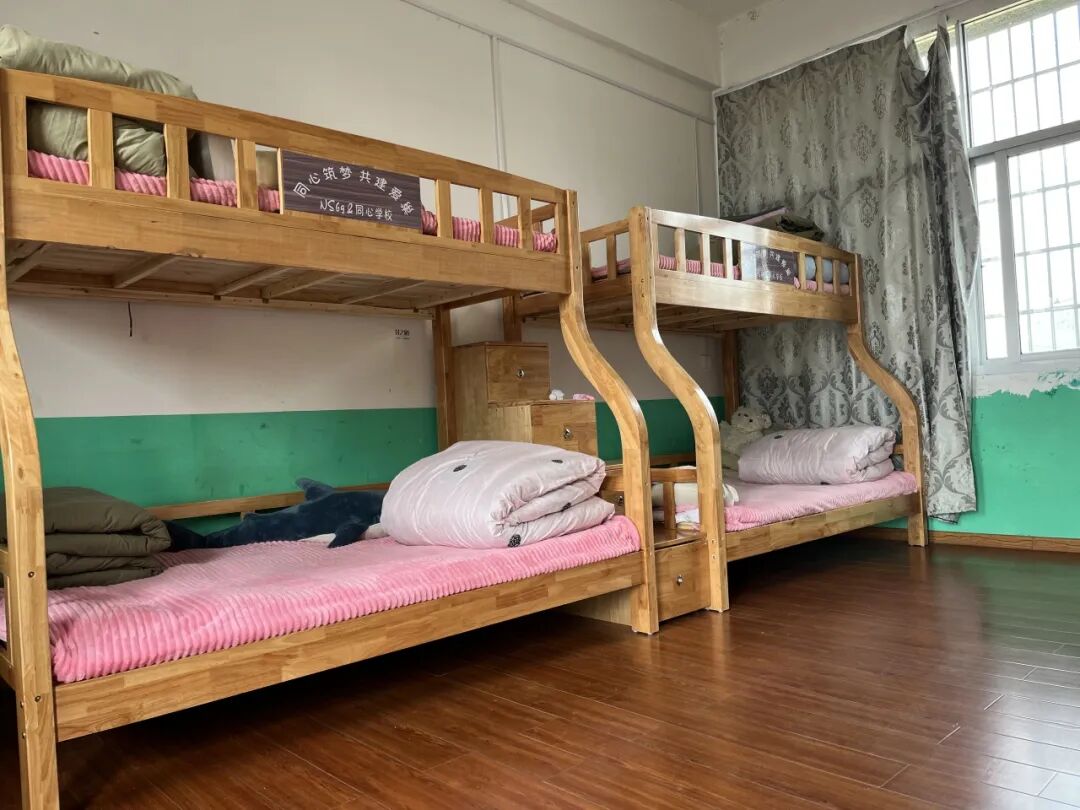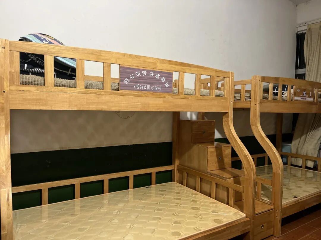 一次偶然的走访,泉州诺思NS69团队的成员来到同心学校,听闻施校长说非常担忧宿舍里摇晃的木床,存在着随时会掉下来危险,急需更换结实的、安全的床铺。NS69团队代表曹叶秋、许国阳把这些需求都记在心里,回到泉州立即发动团队筹集,一时爱心云集响应,愿望实现的速度,让我们真切地感受到传说中的“泉州精神”。仅仅一个下午就募集到15张爱心实木床。紧接着超过预期的爱不断地涌来,全新的被套、冬衣、鞋子、生活用品、拉杆行李包、食品等都齐了。为了让孩子们尽早睡上崭新的床铺,从晋江来的安装师傅们也让我们体会到“爱拼才会赢”的干劲,日夜赶工,不到一周的时间,孩子们的房间已换上崭新的床铺,焕然一新。