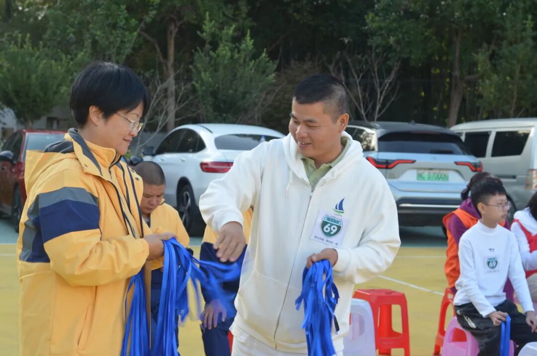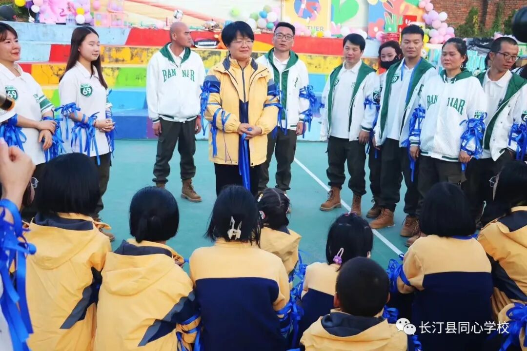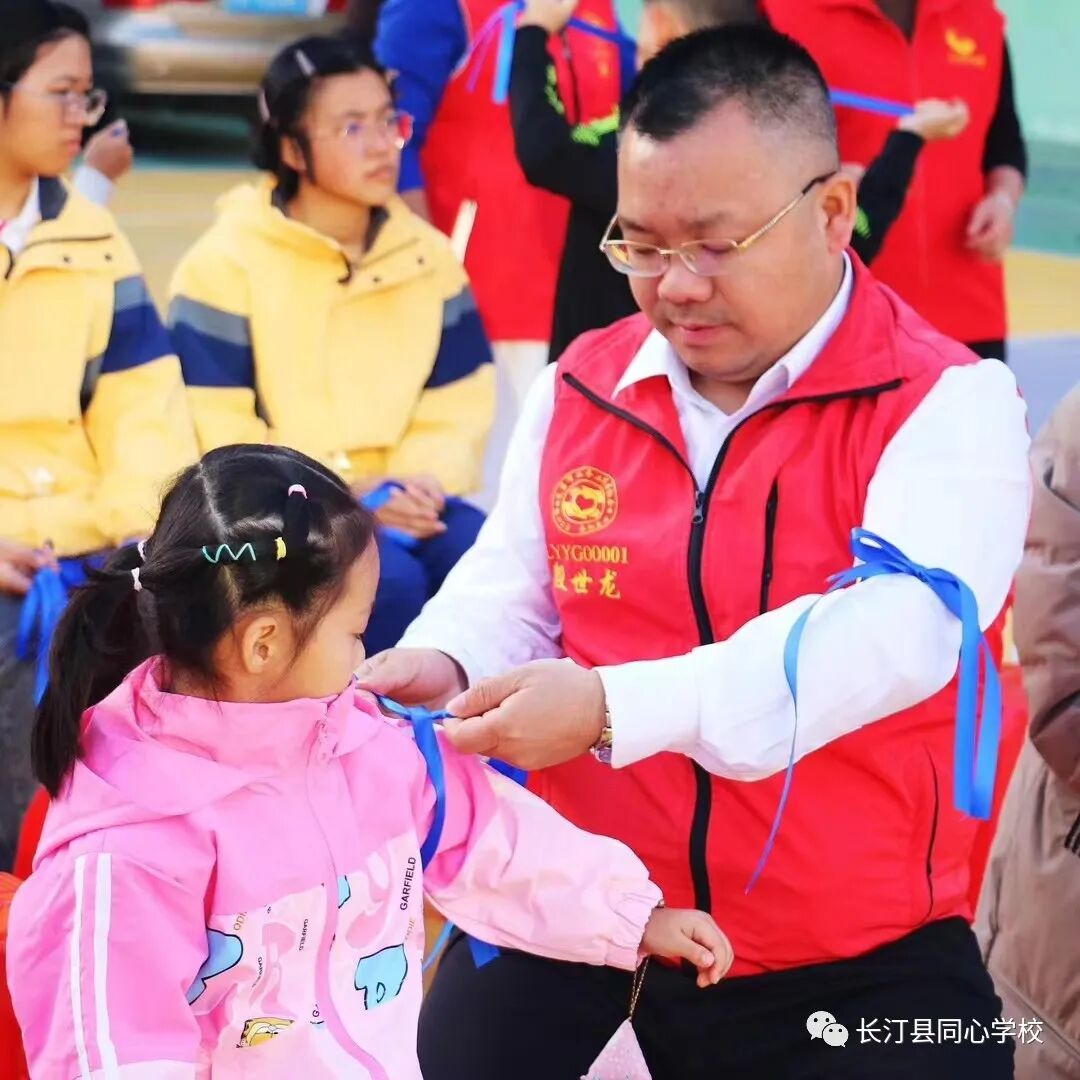 值此NS69团队践行一百天这个重要的时刻,同心学校有幸参与其中,认识了这样一群勇敢、自信、负责任的团队,他们传播蓝丝带的故事。一根蓝丝带传给最需要你的爱和力量的人,照亮他们的生命,传递着爱和感恩。当他们睁开眼睛,看到自己走过的每个足迹;当施校长睁开眼睛,看见自己哺育的每个孩子;当孩子们睁开眼睛,身边有无数守护自己的人,还有身上数不清的蓝丝带,所有的人都收获了满满的爱,一路走来,我们陪伴他人,也在被他人陪伴。