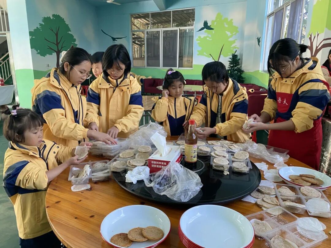 当一首首爱的旋律在同心学校的上空萦绕时,整个操场弥漫着浓浓的善意与温暖。操场上洋溢着如同过节般的喜庆热闹,有的在布置场地;有的在忙着备餐;有的在调试设备;有的在排练节目。餐厅里同心学校的孩子们拿出自己的手艺,正在为辛苦而来的叔叔阿姨们煎薯饼,也想让远道而来的叔叔阿姨们品尝客家的美食呢。