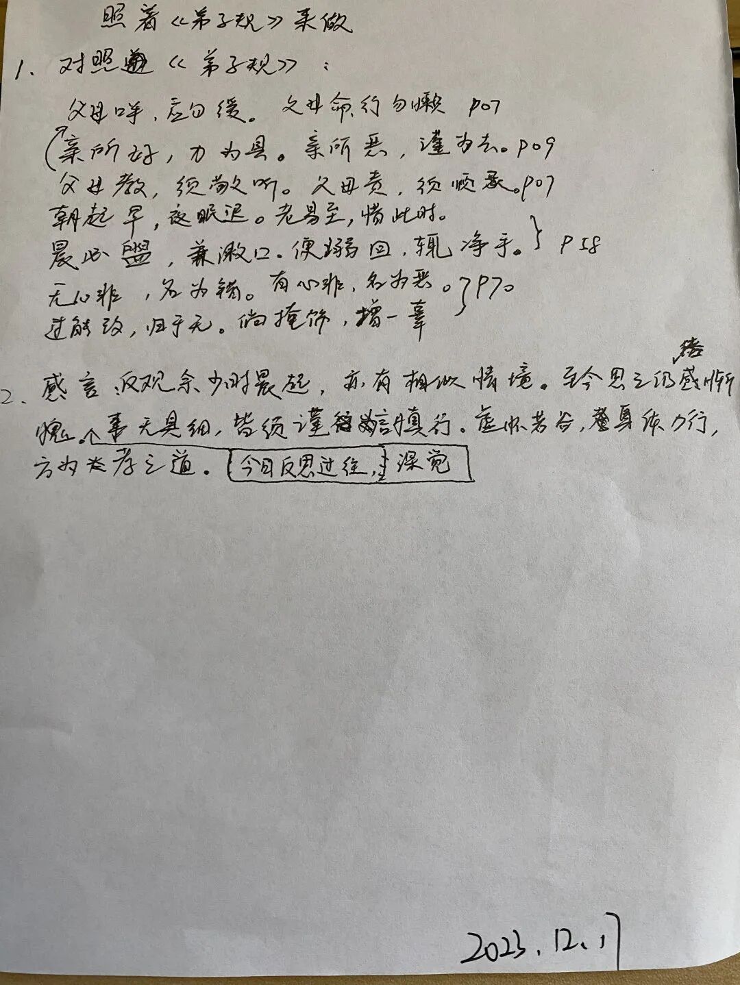 “父母呼,应勿缓,父母命,行勿懒。”当长辈叫我们做事的时候,应及时行动,不可拖延或推辞偷懒。有些简单的道理,往往最难做到。在大家集体学习的时候共同思考,向内自省,发现自己亟需进步的地方,共同探讨如何能够更好地实行与改进。