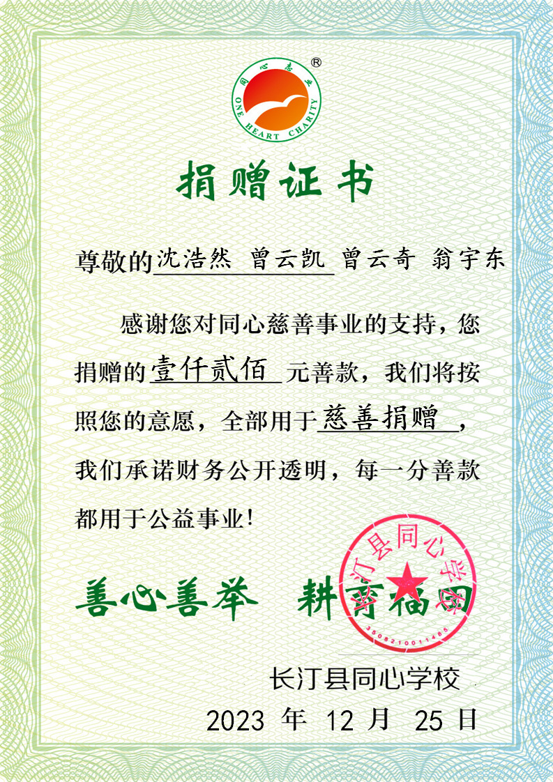 离开学校前,他们纷纷拿出自己的零花钱捐赠到同心学校,感谢学校的照顾,也为同心学校奉献出自己的爱心。