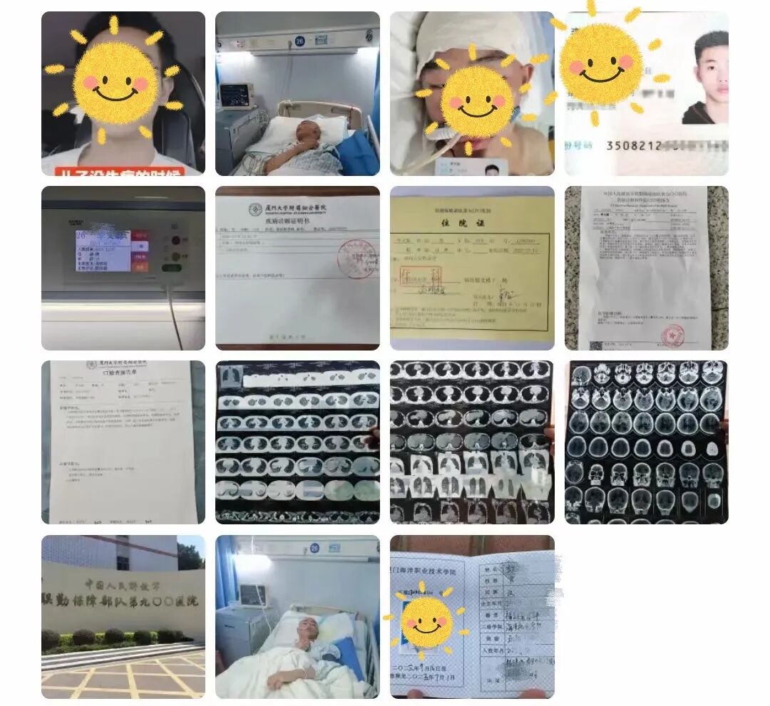 家住长汀县河田镇的李同学,出生在一个普通的农民家庭,目前是厦门海洋职业技术学院大一学生,18岁花一样的年纪,却突然病倒了。突发的剧烈头晕头痛,在医院检查出左侧脑室长个8.2公分的脑瘤,情况很严重,转到联勤保障部队第九00医院(福州总院)。经过一系列检查,确诊为恶胜脑瘤,需要马上进行开颅手术。手术费用、多疗程的放疗化疗及康复治疗需要大几十万的高昂费用,对于一个普通农村家庭带来沉重的经济压力。