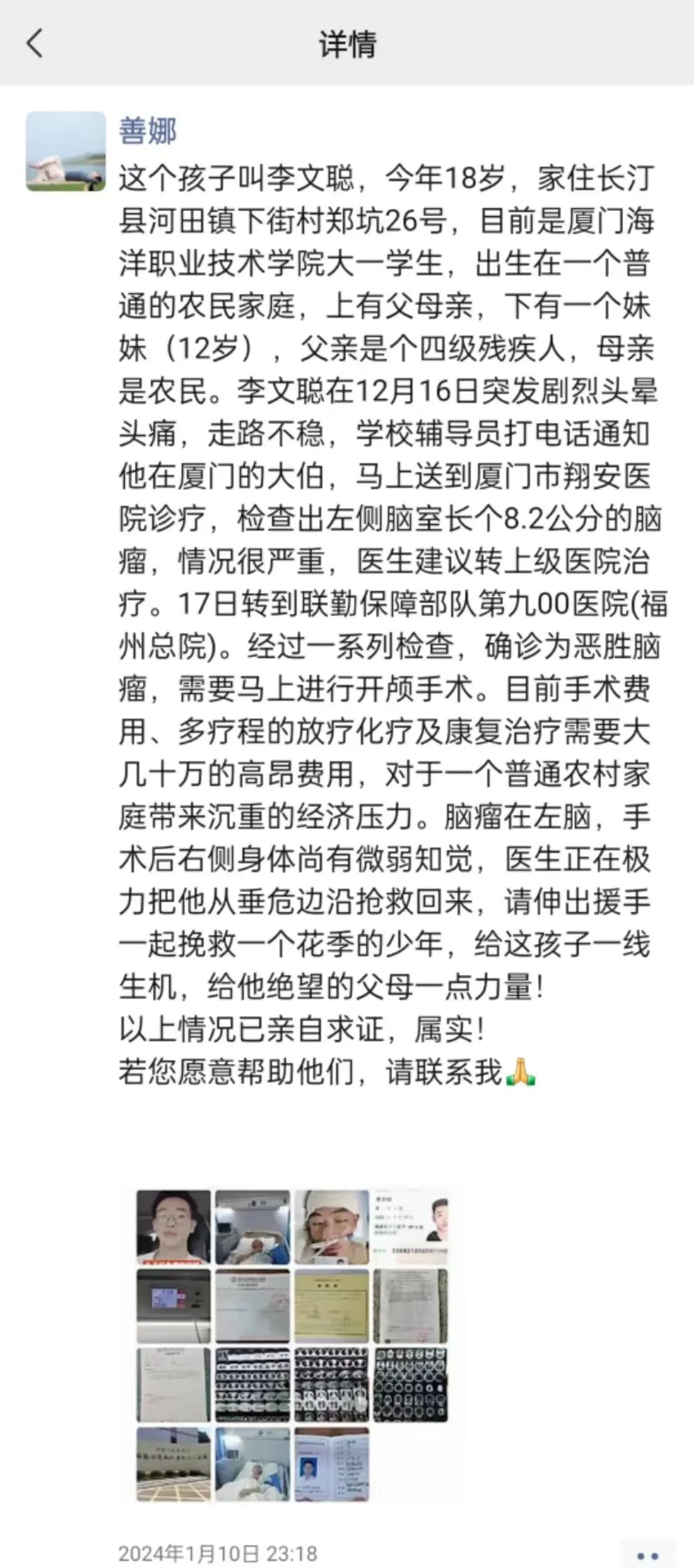 上周看到长汀县同心学校(同心志业体之一,关心少年儿童、关怀困境家庭的公益慈善机构)校长善娜师姐分享李同学的意外消息,触动!
