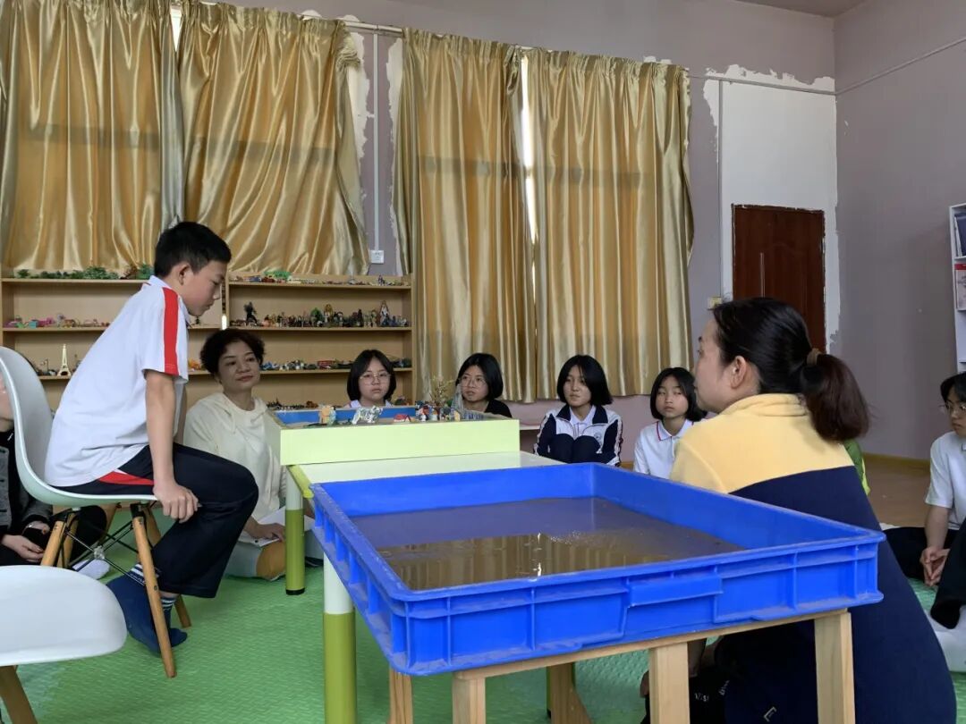 第二场是阿黛老师为同心学校的老师们督导关于沙盘游戏运用的心理学知识及实践方法,辅导老师针对孩子们的情况来制定出不同的沙盘游戏主题与计划,遵循以孩子为主体,在持续性的课程中进行疗愈与释放,帮助孩子们自我觉察与成长,帮助同心学校的老师更有效的使用团体沙盘游戏来引领孩子们,以便在今后的陪伴过程中成为更好的引导者。