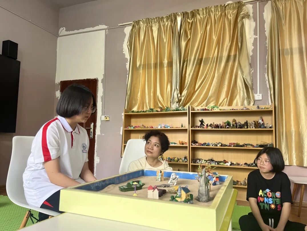 看似普普通通的沙子,却包含着珍珠般的色彩。对于孩子们来说,沙盘中的粒粒沙子,赋予他们自由与快乐,而老师们作为陪伴者,在沙盘游戏中看到孩子们的心理与自愈历程。