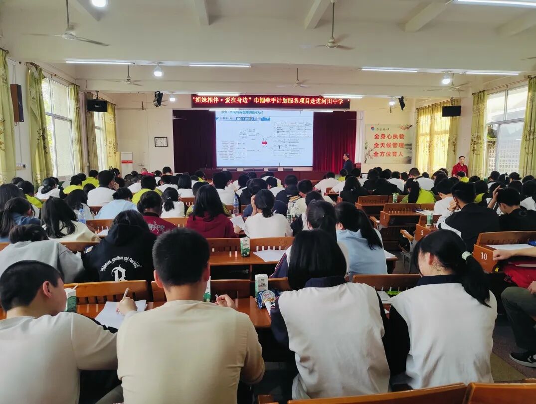 2024年4月11日 下午“姐妹相伴•爱在身边”巾帼牵手计划服务项目走进河田中学,在高考最后冲刺的五十几天这个人生的重要一步,我们特邀张陆腾老师从厦门前来为河田中学高三180名学子开展一场《考前动力激发与冲刺规划》激励赋能课。