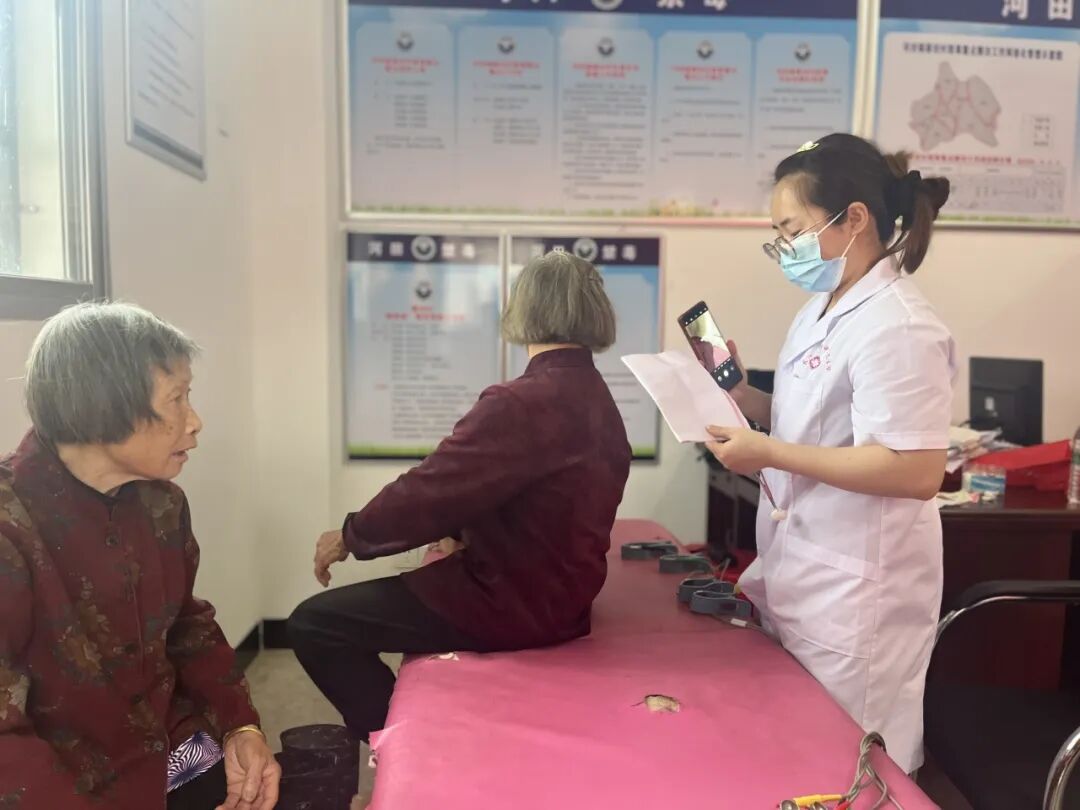 义诊区是由河田卫生院团队为老人提供免费的体检服务,让他们及时了解自己的身体状况。在体检过程中,医护人员细致地为老人进行检查,耐心地询问他们的身体状况,为他们测量血压、血常规检查、B超、心电图等全面检查,并解答他们可能存在的疑虑和问题。同时,还为老人提供一些健康指导和建议,帮助他们更好地保持身体健康。