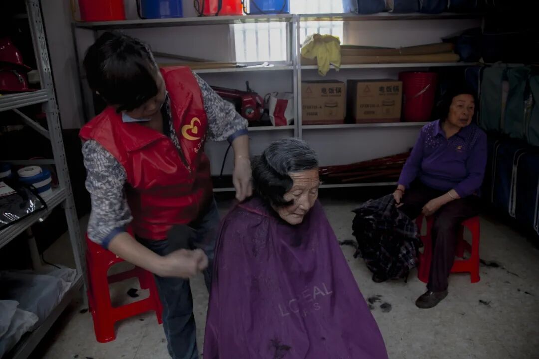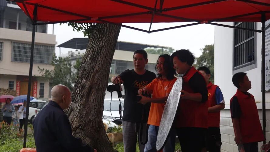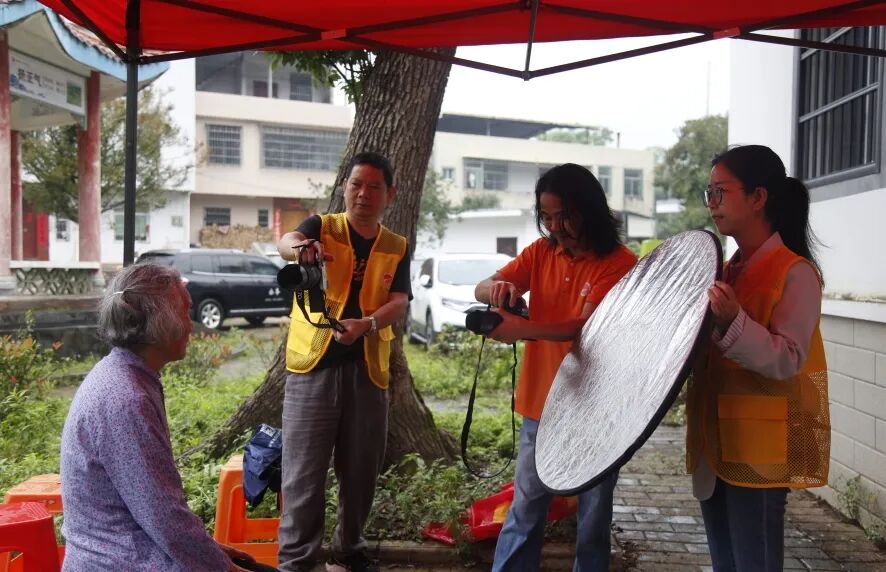 接下来是为长者们精心准备的拍照环节。我们请来了专业的摄影师,为长者们拍摄照片。对于行动不便的老人,志愿者们会提供入户服务,为老人们剪头发、拍摄照片。在与摄影师的自然互动下,长者们或微笑、或沉思,每一个瞬间都充满了爱与温暖。