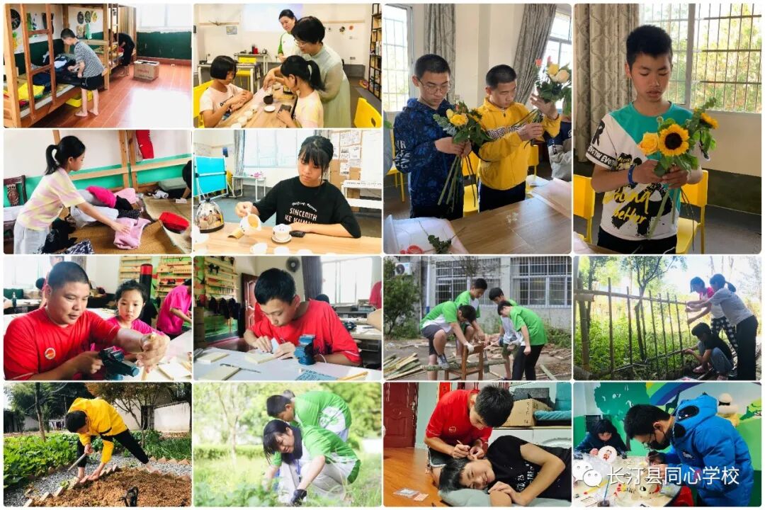 集中照料的孩子年龄跨度大,包括小学、中学、职业学校、本科大学,对于他们而言,同心学校更像是一个家——就读小学的孩子每天由亲子老师接送往返,放学后回到同心学校生活,就读中学、职校、大学的孩子平日在学校住宿,周末或法定节假日、寒暑假回到同心学校一起生活。同心学校为孩子们招募了专职的亲子老师,负责他们的生活及教育。这里给予孩子们的,不是通识教育,而是有关于生活教养、生活美育素养、独立生活能力、感恩能力的培养,在他们在困境中挣扎的时候借他们一双向上托举的手,给他们一个安全的家,一段特定时期的保护,一种爱的教育。