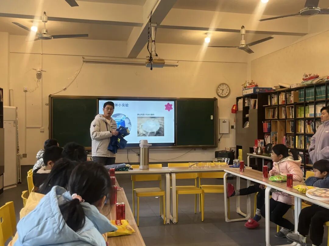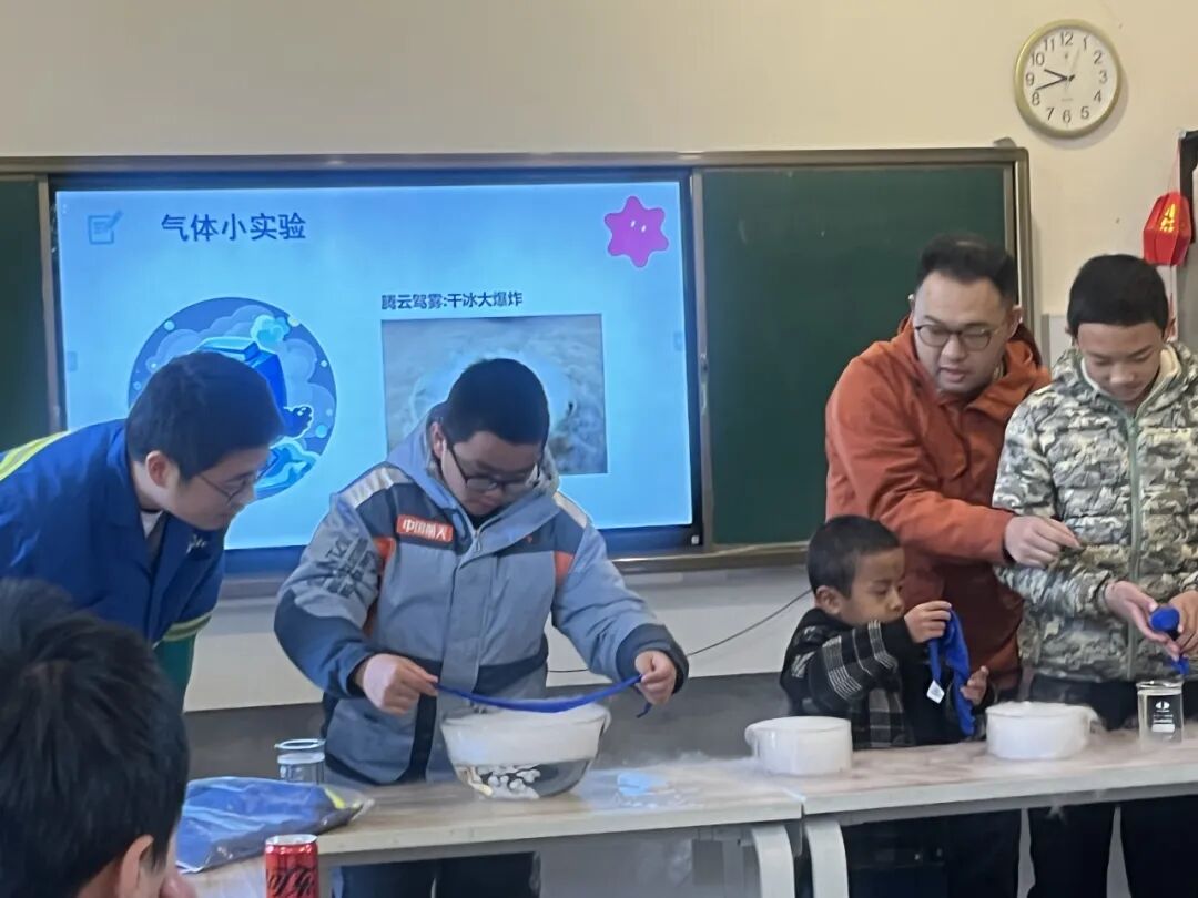 当干冰遇上温热的肥皂水,就会形成漂亮的“水晶球”,五彩斑斓。每个孩子都跃跃欲试,专注于自己的双手,一次、两次......失败了也毫不气馁,直至成功,这便是科学精神。将氦气注入气球,气球逐渐膨胀,最终漂浮在空中,教室里充满了一群放飞理想的有志青年。