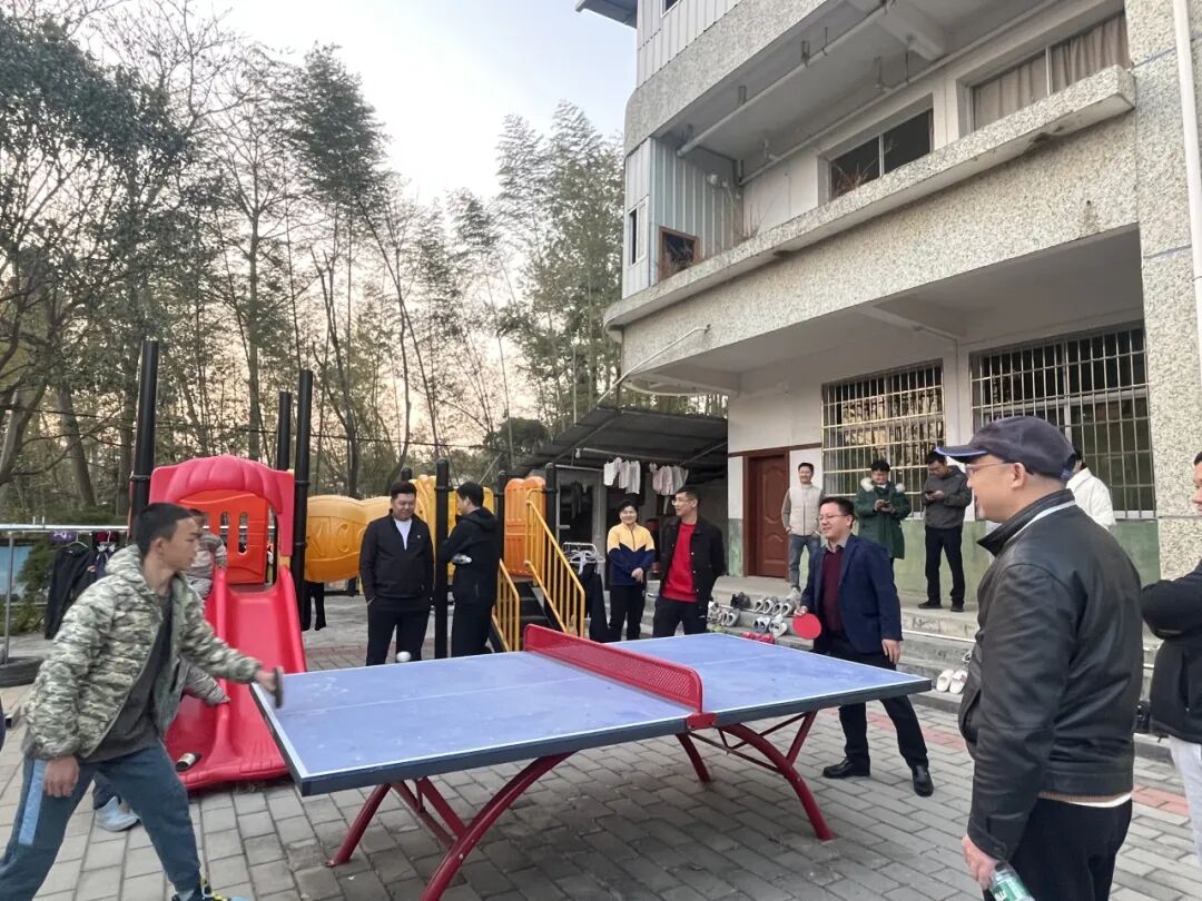 随后,他们与孩子们亲切互动,共同参与了乒乓球游戏。在轻松愉快的氛围中与孩子们打成一片,欢声笑语不断。这不仅让孩子们感受到了来自社会各界的关爱,也让他们在游戏中锻炼了身体,收获了快乐。