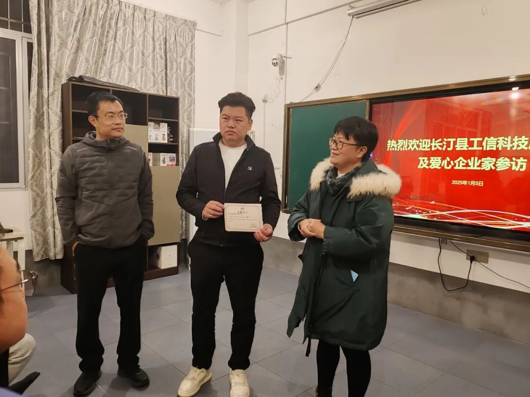 2025年1月5日下午,在一年中最冷的节气“小寒”,长汀县工信科技局朱建凯局长带领二十几位爱心企业家来到同心学校参访。
