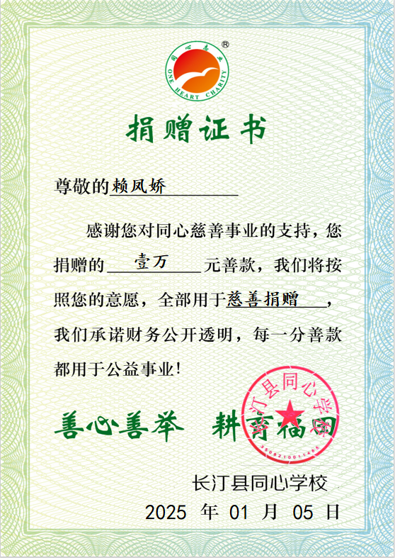 在感动之余,爱心企业家们慷慨解囊,向同心学校捐赠了8000元善款。这笔善款将全部用于同心学校建设及孩子的健康发展。