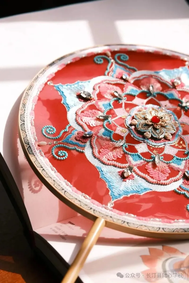 这不仅仅是一堂手工课,更是一场流动的美学盛宴!孩子们在穿针引线中,亲身体验了色彩的碰撞、构图的精妙、光影的流转。珠绣的璀璨、丝线的柔韧、图案的韵律,都在无声地滋养着他们的审美感知力。